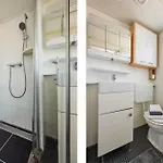 Die Badezimmer im Chalet in Oisterwijk sind mit einer getrennten Toilette und einer Dusche ausgestattet. Handtücher gehören auch zu den Badezimmern.